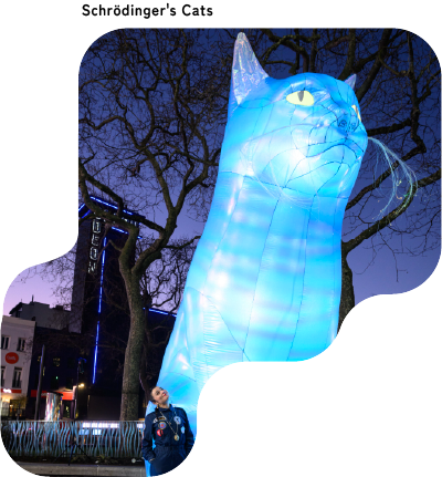 一見すると常識に反するように思えますが、この考え方は現代物理学を象徴する重要なテーマのひとつです。私たちが猫や星を見て「そこにある」と感じるものも、実際には無数の可能性が重なり合った“雲のような状態”として存在しているのだと、この作品は問いかけます。